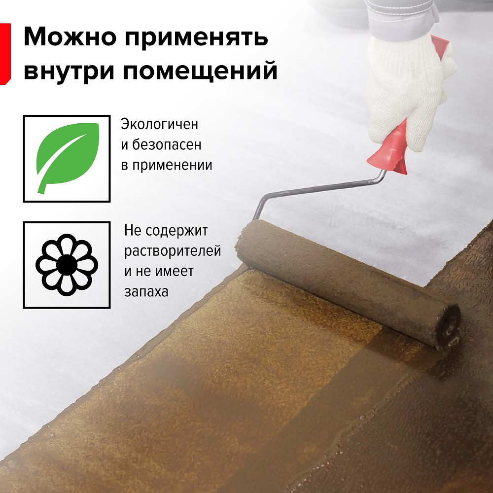 - Безопасность — не содержит растворителей и не имеет запаха, что делает его безопасным для здоровья.