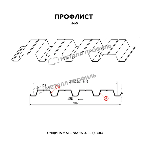 Если вы желаете обеспечить профилированному листу долговечную защиту, выбирайте н-60 NormanMP®. Сталь с покрытием NormanMP® не корродирует и не выгорает. Технические характеристики NormanMP® следующие: толщина оцинкованной стали с полимерным покрытием — 0.5 мм. NormanMP® соответствует строгим требованиям стандартов качества: специалисты нашей компании тщательно контролируют процесс производства. Термостойкое покрытие, которое можно применять вне зависимости от климата, обладает средней стойкостью к механическим воздействиям. Вы можете эксплуатировать его при температуре не более +100 градусов. Профилированный лист с указанным покрытием противостоит воздействию окружающей среды. Ищете проверенное качество? Выбирайте NormanMP®. Подтверждение наших слов — успешно пройденные испытания Московского института стали и сплавов и гарантия до 20 лет*.Преимущества: